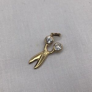 18K Yellow Gold Scissors Pendant Charm w/ Clear Stones | 1.07g