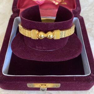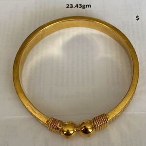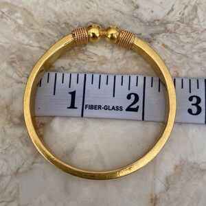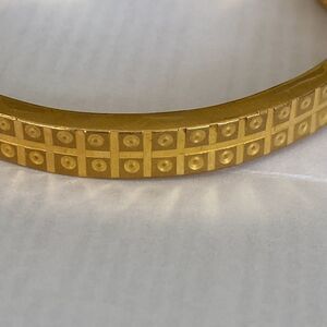 Stunning vintage solid 18K yellow gold slip on bangle bracelet featuring a traditional Indian design with intricate rivet pattern.