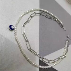 18k Gold Filled Evil Eye and Pearl Layered Choker Necklace