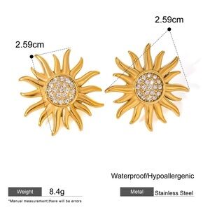 18k Gold Plated Sunburst Earrings - Gold Jewelry