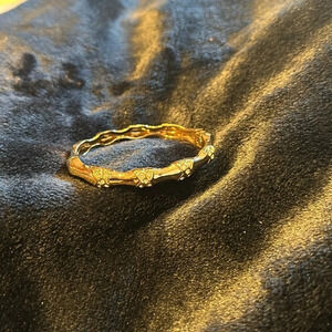 18k Yellow gold tone bamboo style love studded white stones bangle bracelet