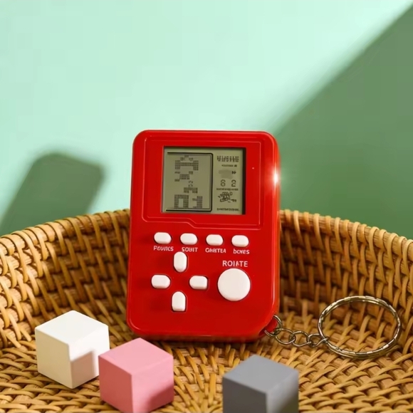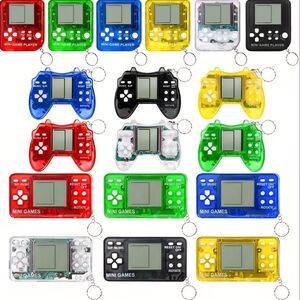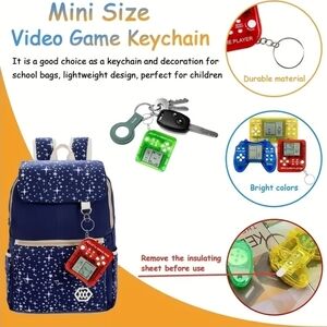 18 mini retro arcade handheld keychain with buttons. Features a pixelated screen for interactive play. Has 26 games in them. 18 various style and look of the keychain. Random colours.