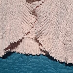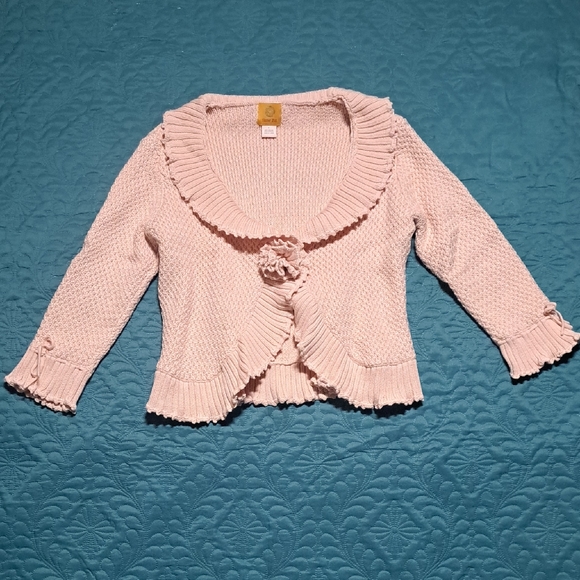 Soft blush knit with romantic ruffle trim and a chic rosette accent, this Ruby Rd. cardigan is your go-to for feminine layering. Perfect for elevating casual looks or adding charm to dressy outfits