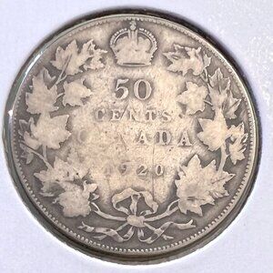 1920 Canada King George V Silver 1/2 Dollar Coin!