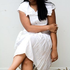 This one-of-a-kind dress is a truly unique find! This timeless white dress can be dressed up or dressed down. It can be perfect for a walk around the neighbourhood or even a backyard lunch!