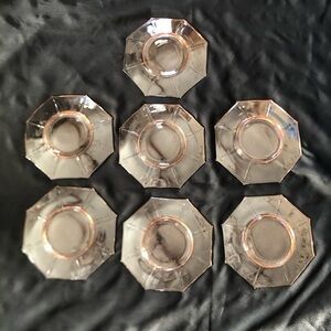 Elegant hexagonal glass plates. Perfect for any table setting. Adds a touch of vintage charm.
