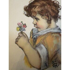 1920s Maud Tousey Wonder & Teething Print - Red Hair Girl W/flowers Boy W/orange