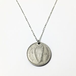 1928 Irish Silver Coin Necklace — Italy 925 Sterling Silver Chain — 18-inch