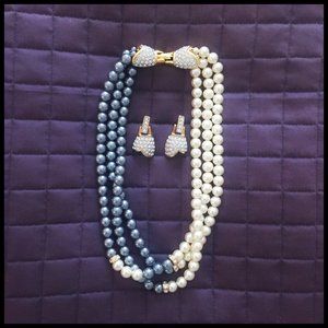 1928 Jewelry 16 inch triple strand slate grey and pearl costume necklace with