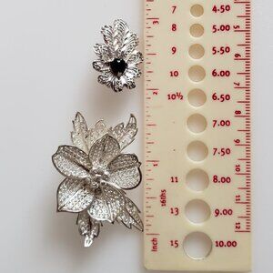 1930-S VINTAGE STERLING FILIGREE FLOWER BROOCH AND MATCHING EAR RINGS. FINE WORK!