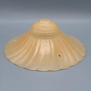 1930s Art Deco Frosted Peach Glass Ceiling Light Shade, Ribbed Vintage Fixture