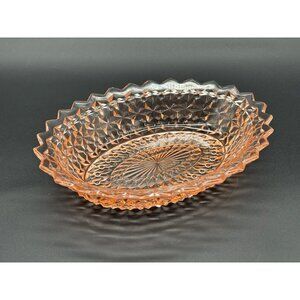 1930s Jeannette Glass Pink Holiday Buttons Bows Pink Depression Glass Oval Bowl