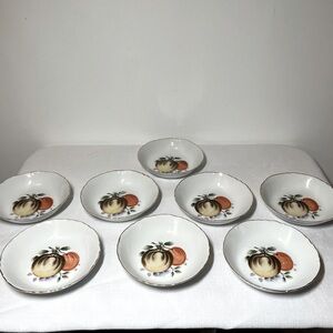 1930's Porcelain Fruit Dessert Bowls. Set of 8. Made in JAPAN. GOLD RIM. Antique