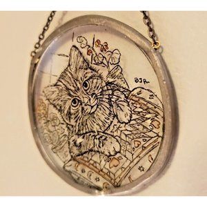 1935/1995 (Says 1935, but may be 1995) WH BJR. Rare Vintage Antique Glass Cat Window Ornament Sun Catcher 3"