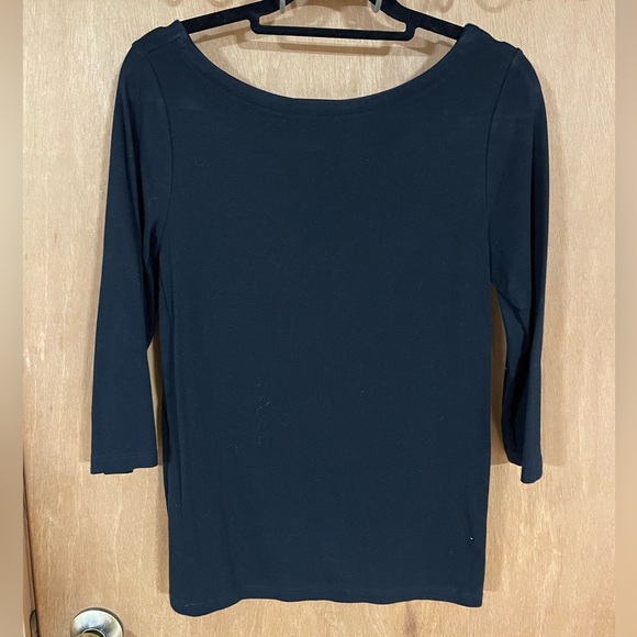 3/4 length sleeves , with a scooped back detail in this comfortable t shirt material