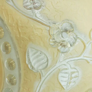 Frosted Cream/Yellow glass with Clear Florals and vine Pattern.