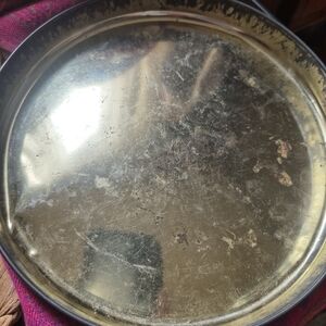 vintage tin container by Metalum. Features a sleek metallic finish. Note condition in photos