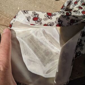 1940s Cardinal Necktie, white red and black scroll design with cardinal