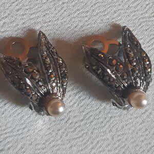 1950's Art Nouveau Style Marcasite Midcentury Vintage Small Silver Tone Earrings