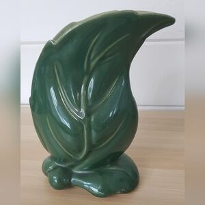 Midcentury modern 317 Beauceware Canada green leaf pottery vase.
