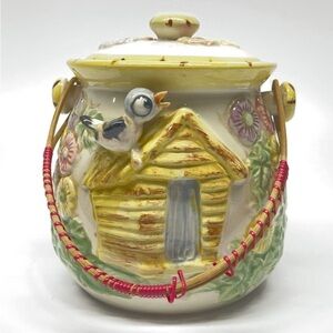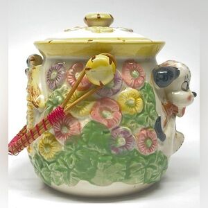 1950s ESD JAPAN -Handpainted Cookie Jar Puppy Flowers Bird on House 3D - Rare*