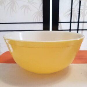 Excellent vintage condition. Minor normal wear as would be expected on a 75 year old item. Brown bowl has a minor imperfection and a 1/2" scratch, yellow bowl has a 1/8' black mark.