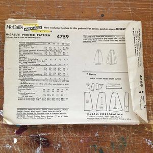 Vintage McCall's 4759 Trapeze skirts pattern - Circa 1958