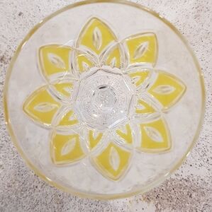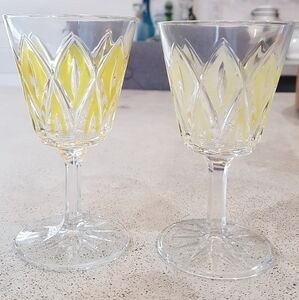 • 2 Yellow diamond detail glasses. The yellow has worn quite a bit on one glass.