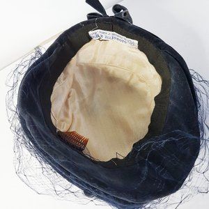 1950s Vintage Luxury Paris Blue Velvet Hat, Georgette de Treze Paris Velvet Hat