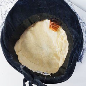 1950s Vintage Paris Blue Velvet Hat, Georgette de Treze Paris Velvet Hat, Luxury Navy Blue Velvet Half Hat, 1950's Masquerade Hat