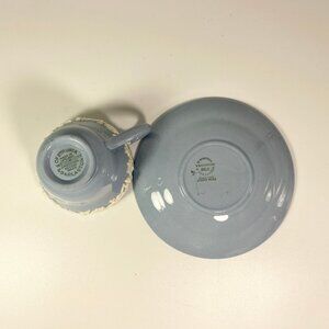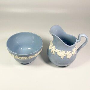 1950s Wedgwood Queensware Embossed Cream On Blue Creamer Sugar Bowl
