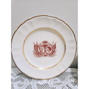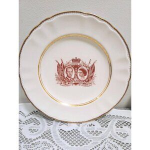 Celebrate a moment in history with this stunning 9-inch commemorative plate made by Cassidian to honor the 1951 British Royal Visit to Canada. Featuring a beautiful 22-karat gold warranted trim, this collectible piece showcases classic post-war craftsmanship and royal pageantry.