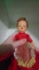 She comes with a red bodysuit, sheer red dress, and an apron. I am not sure where the outfits come from. I don't think they are homemade. I suspect they are from a vogue ginny doll, though I cannot find which one.
