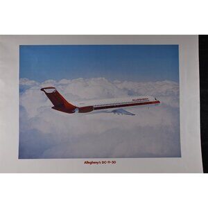 1960 - 1970s Allegheny McDonnell Douglas DC-9-50 airplane travel poster 16x20",