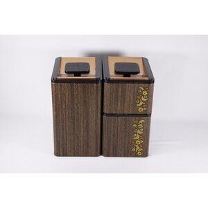1960-1970s Kromex Kitchen storage tins, faux wood grain flower design copper