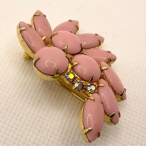 Blush pink with rhinestones brooch, gold. Vintage 1960’s cool mod mid century modern style