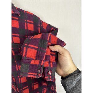 Vintage 1960s Champion Heavy Flannel Shirt Jacket Red Black Plaid – Size 16.5 (Fits L)