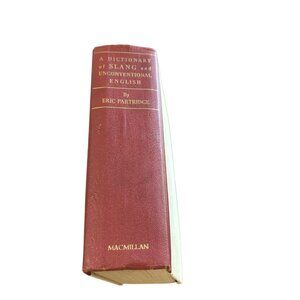 1960s Dictionary of SLANG and Unconventional English by Eric Partridge. Colloquialisms and catch-phrases, Solecisms and Catachreses, Nicknames, Vulgarisms and such Americanisms as have been naturalized. Two Volumes in one. Volume 1: The dictionary. Volume 2: The supplement. Over 1300 pages. Hard Cover.