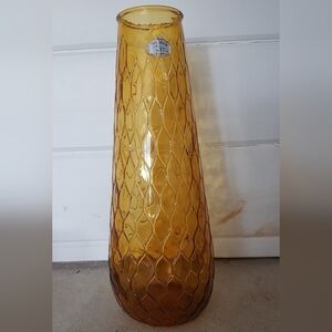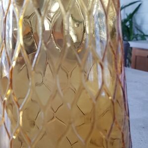 Guildcraft imported fine collectible art glass from Empoli, Italy. This midcentury beauty is molded in a diamond quilted texture amber glass. Stunning.