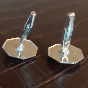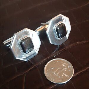 1960s Etched Silver Tone Vintage Cuff Links With Center Stone