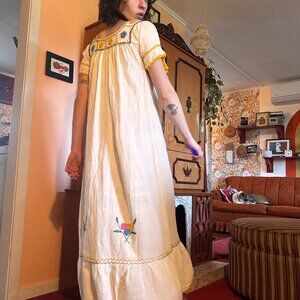 Tags: 60s vintage dress, 1960s vintage dress, 60s vintage hand embroidered dress, 60s prairie dress, 1960s boho dress, 1960s hippie dress, 60s hippie dress, woodstock dress, 70s hippie dress, 1970s boho dress, 70s maxi dress, hand embroidered, one of a kind dress, story imports, polycotton, lightweight prairie dress, hippie prom dress, hand embroidered gown, scalloped edge, floral embroidered, bohemian maxi dress, cottagecore dress, vintage festival dress, peasant dress, romantic vintage dress, embroidered hem, long sleeve vintage dress, flower child dress, 60s flower power dress, 1970s prairie gown, ethereal vintage dress, vintage embroidered boho