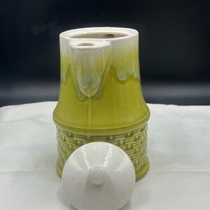 1960s Lime Green Drip Glazed Japanese Tea Set | MCM Basketweave Base | Teapot,