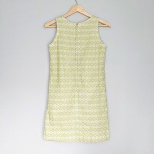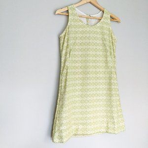 True vintage 1960s handmade shift dress. Lime green lace over white lining (colour most accurate in close ups). Bust darts, metal back zipper. Lining feels like cotton or cotton/polyester (NO stretch), lace synthetic.