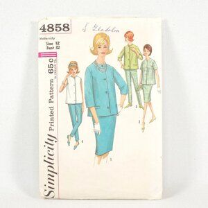 1960s Maternity Simplicity 4858 Top, Skirt, Pants Sz.12 B. 32" Cut But Complete