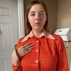 1960โs Orange White Polka Dot Long Sleeve Romper Jumpsuit Playsuit With Pointed Collar