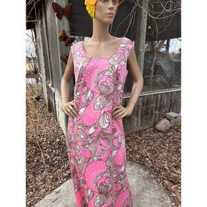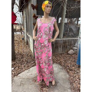 1960s Pink Floral Maxi Dress Evening Gown Creation A La Mode de Paris by Hero Mo