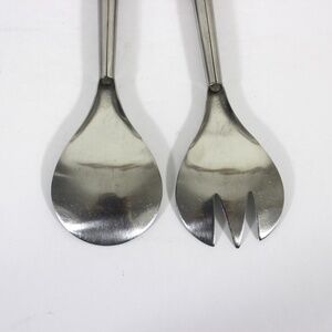 1960’s mid century modern Stelton Denmark rosewood and stainless steel salad server set. Sleek Scandinavian style, long tapered, classic. These have the attribution mark of the penguin. In excellent, gently used vintage condition with some mild scratches and patina from age and use. Sold as a set of two pieces - spoon and fork.