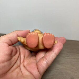In preowned vintage condition with some scratching to eyes, and discoloration at feet that give it a unique look. Glue coming loose at back of hair line.
