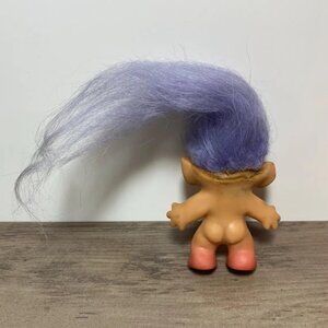 Amazing vintage 1960s troll doll. Rubber body, long beautiful purple mohair, and spiral eyes.