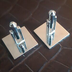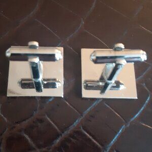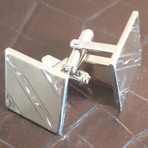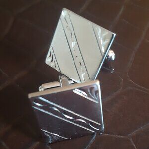1960s Vintage Silver Tone Etched Metal Cuff Links 3/4 Inch Square